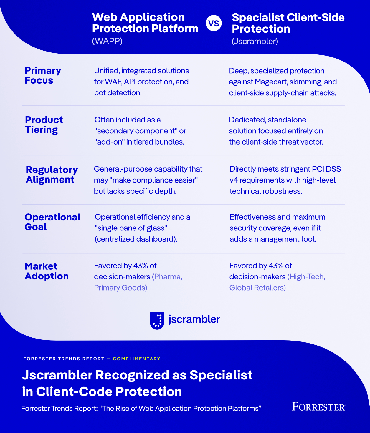 Can platform-based approaches deliver the depth of protection modern web applications require? This question is at the heart of Forrester’s latest research, The Rise of Web Application Protection Platforms, and it’s exactly what will be explored in Jscrambler’s upcoming webinar featuring Forrester, BT Group, and Marriott Vacations Worldwide.